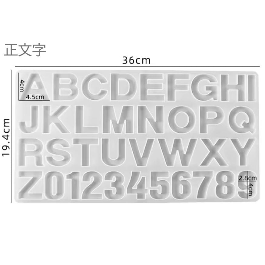 この型を使いレジンを流し込むことで、アルファベットと数字を作ることができます。