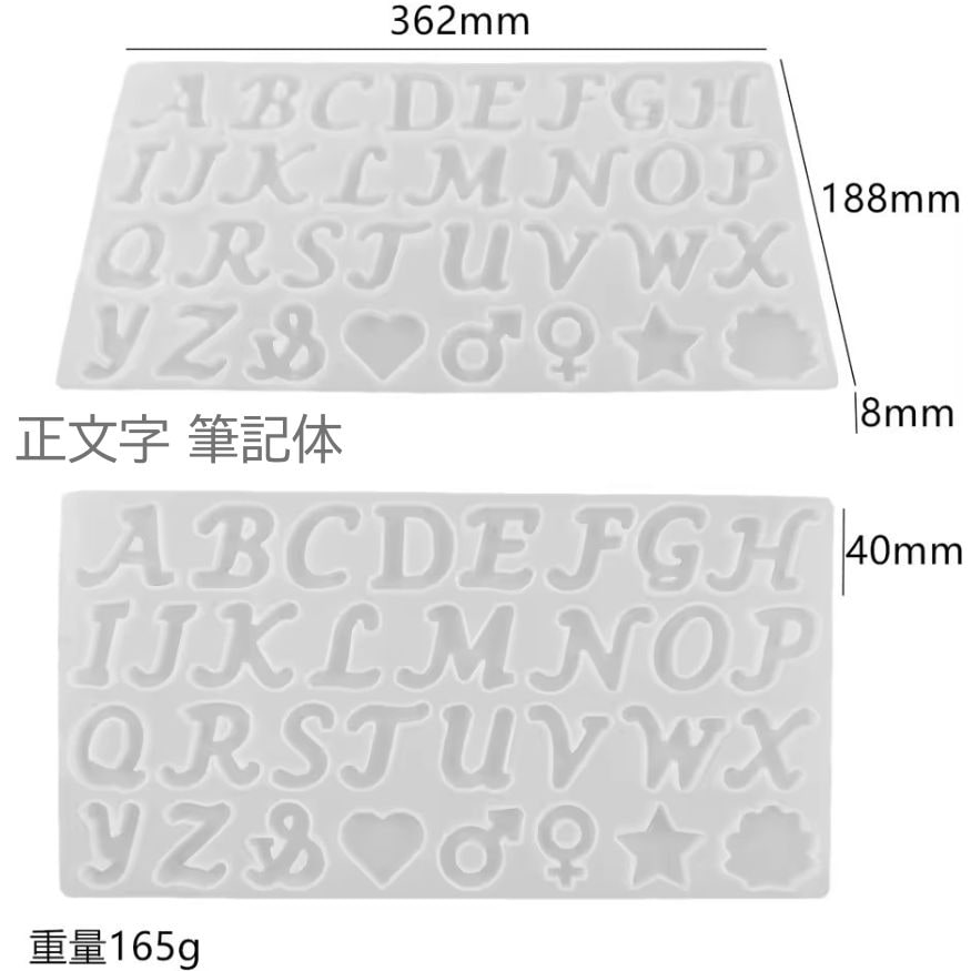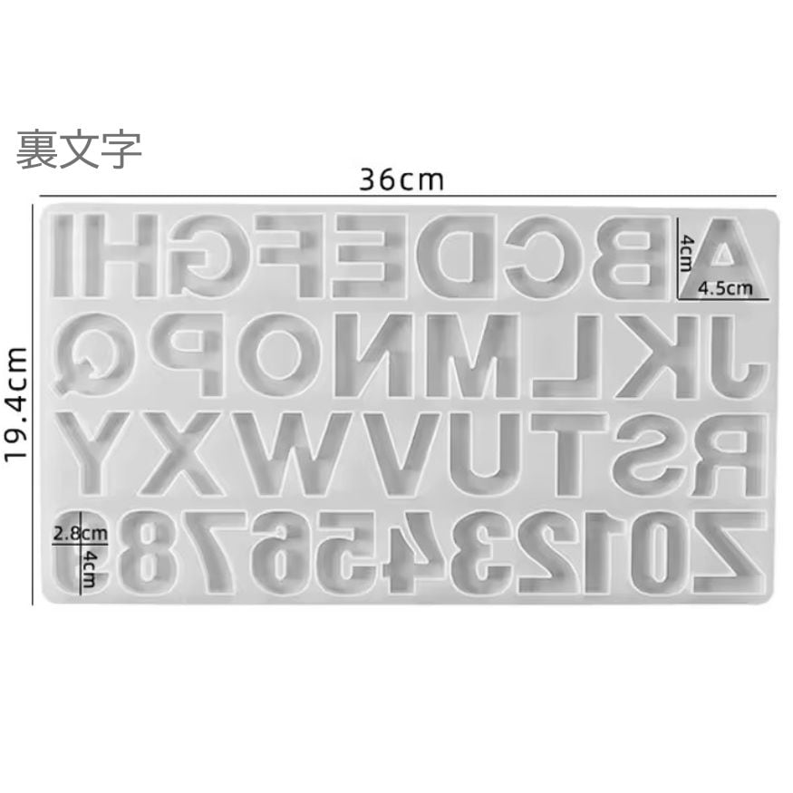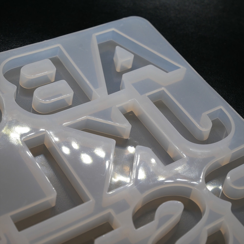 この型を使いレジンを流し込むことで、アルファベットや数字を作ることができます。