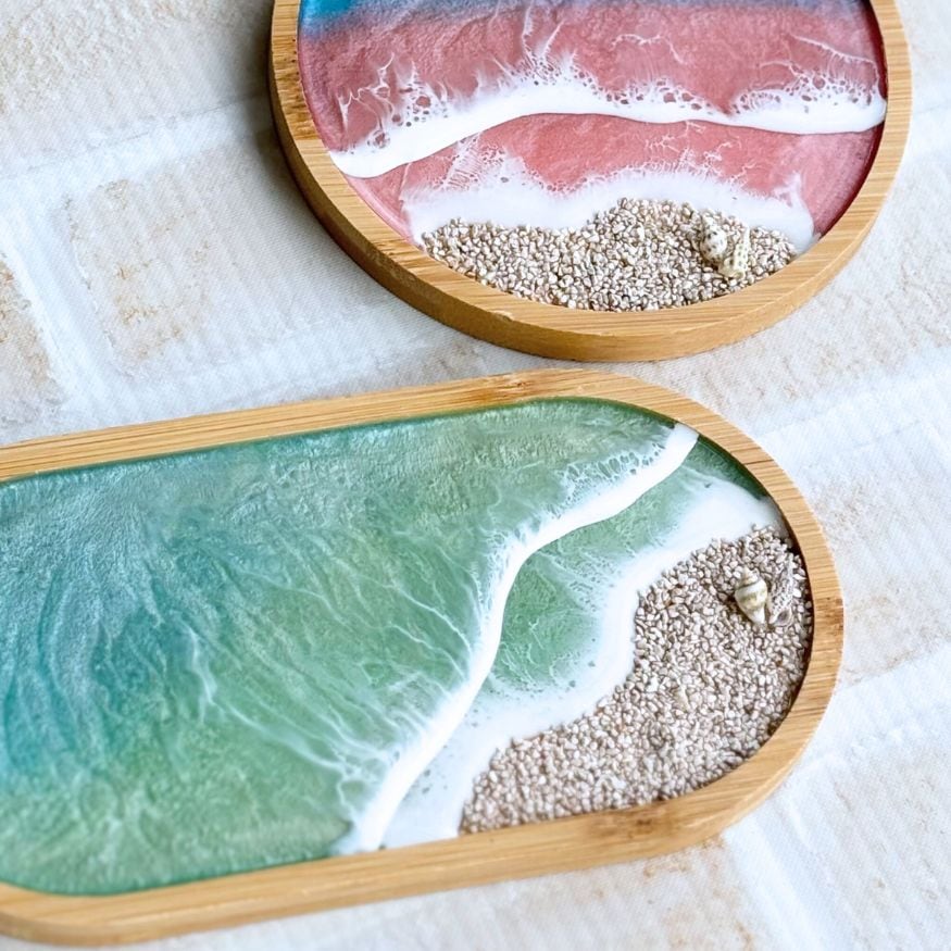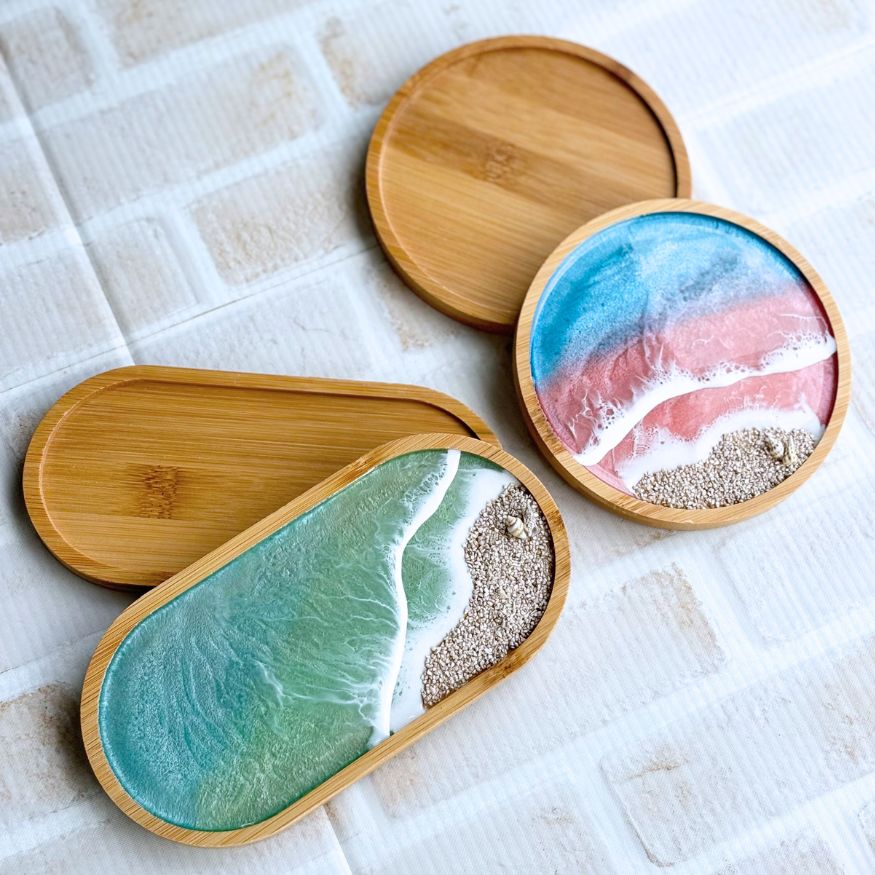 レジンを流して、オリジナルコースターやトレーが作れます。
